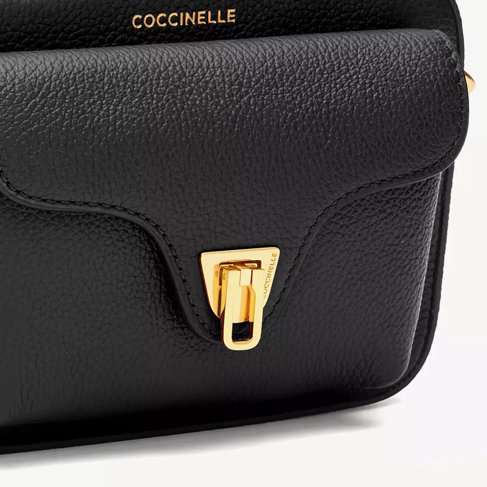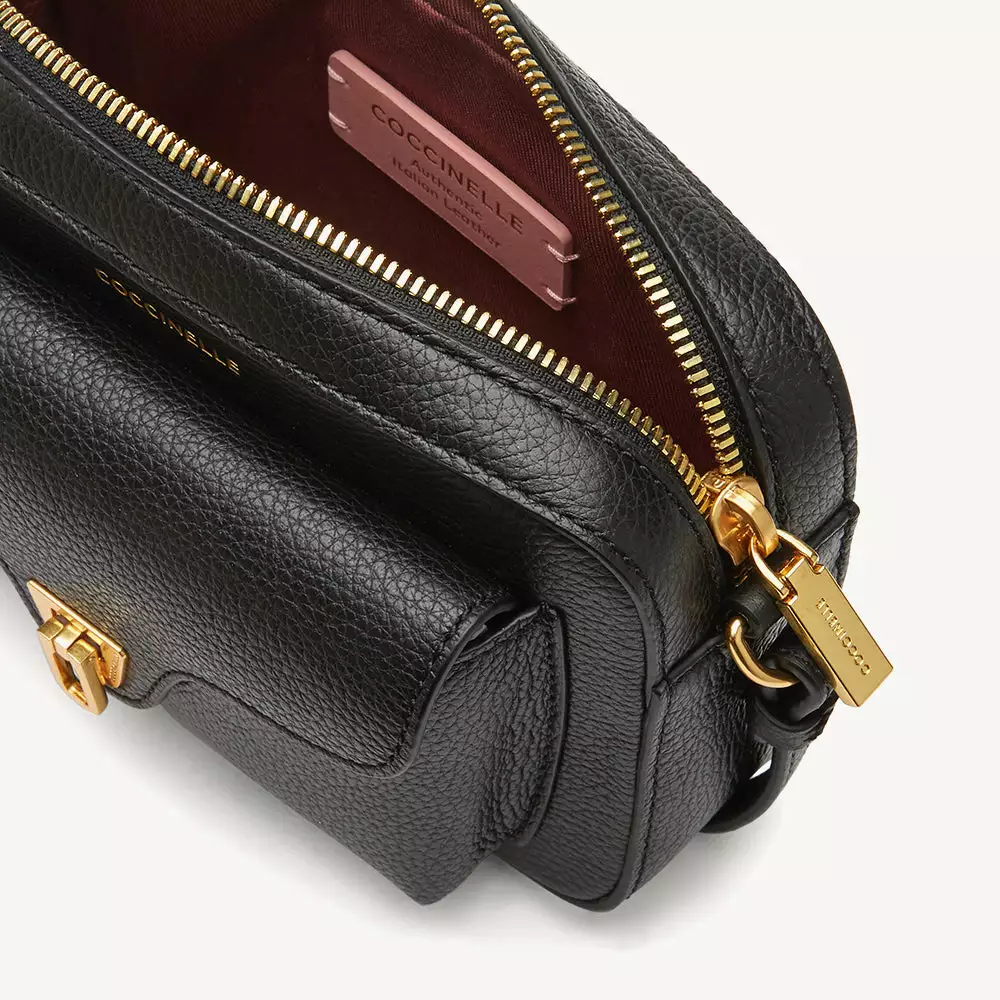 L’affascinante Coccinelle Beat Soft è stata realizzata interamente in pelle con grana e presenta una comoda tracolla regolabile e removibile con gemelli, una tasca frontale e l’interno in tessuto. Completa il tutto la chiusura iconica a forma di plettro.