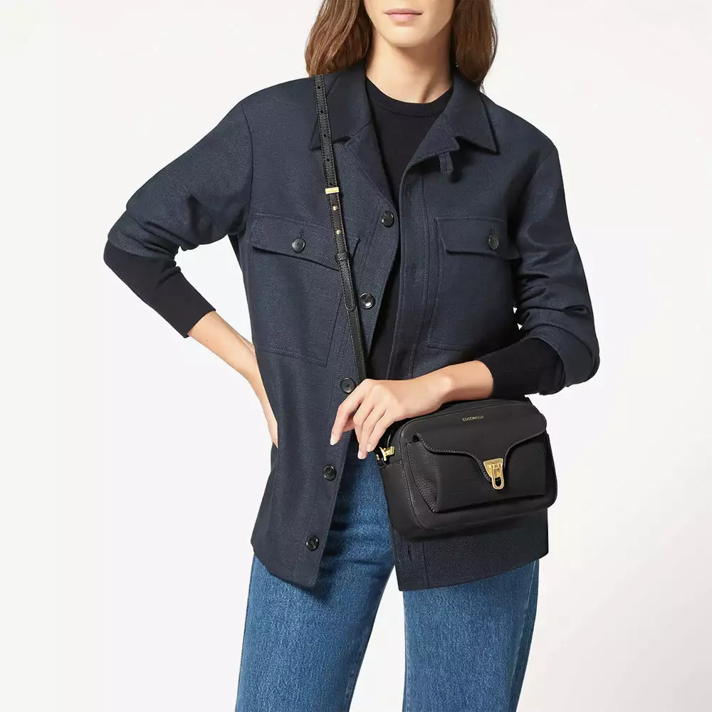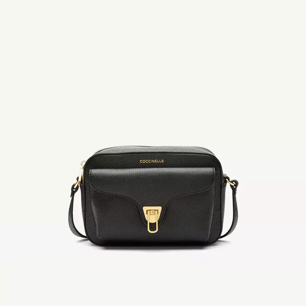 L’affascinante Beat Soft Coccinelle è stata realizzata interamente in pelle con grana e presenta una comoda tracolla regolabile e removibile con gemelli, una tasca frontale e l’interno in tessuto. Completa il tutto la chiusura iconica a forma di plettro.