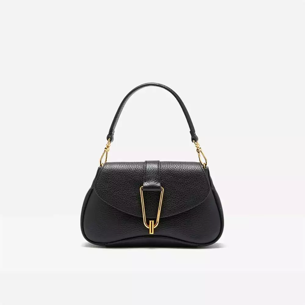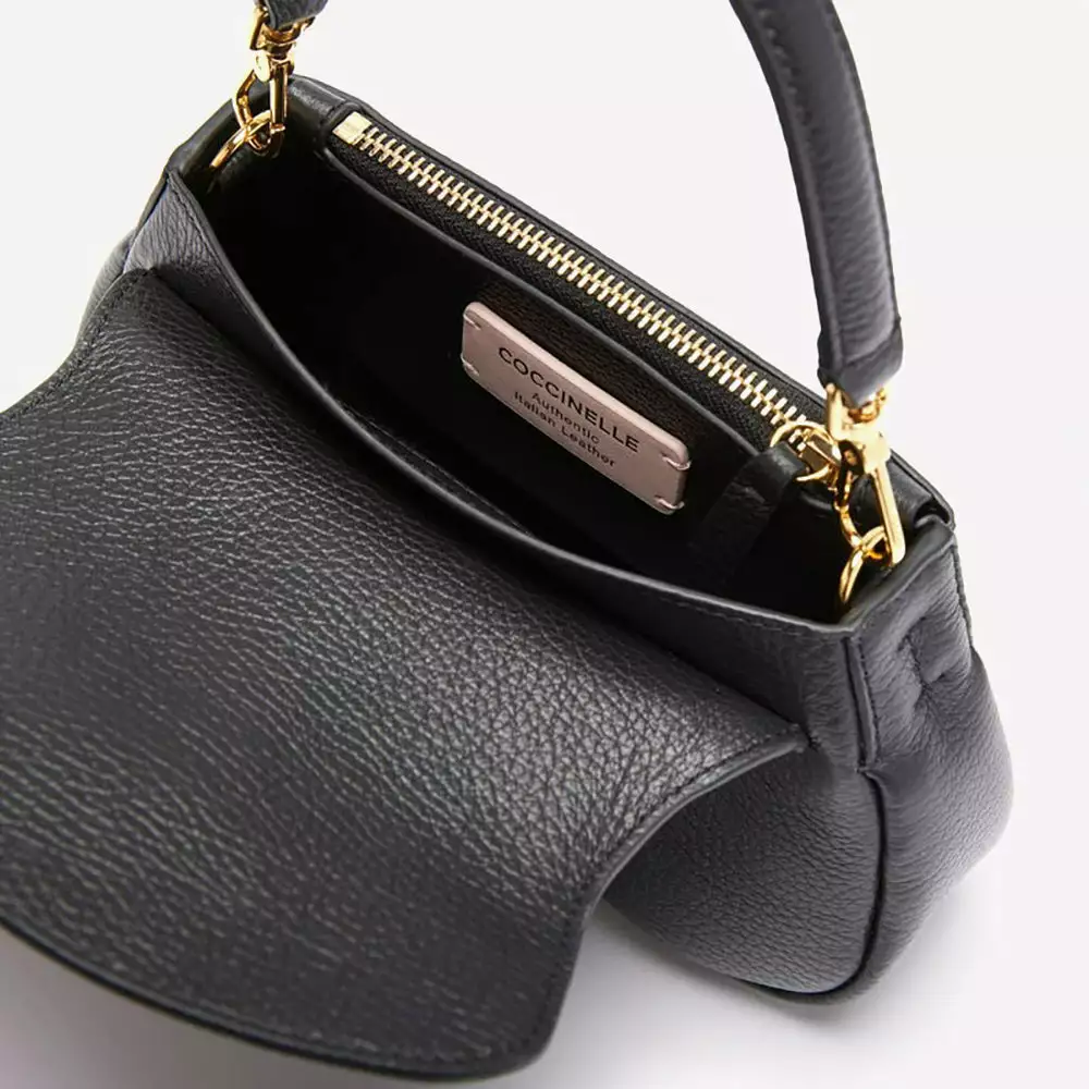 Contemporanea e accattivante, la linea Coccinelle Himma è caratterizzata dal dettaglio unico e riconoscibile del maxi plettro, reso funzionale e sicuro dalla chiusura con girello e da una silhouette sinuosa e inedita. La costruzione leggera, unita alla praticità dell’organizzazione interna, rende ogni modello indispensabile e perfetto per avere con sé tutto il necessario. Questo modello è realizzato in pelle lavorata tramite specifici macchinari e poi bottalata al fine di mantenerne la morbidezza. È una pelle molto resistente che si presta a una facile pulizia, ideale per un uso quotidiano.