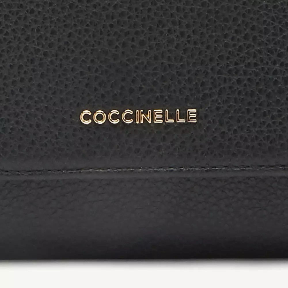 ed uno con zip sul retro, un porta banconote con divisorio, cinque scomparti interni. E’ infine arricchito dal logo Coccinelle in metallo.