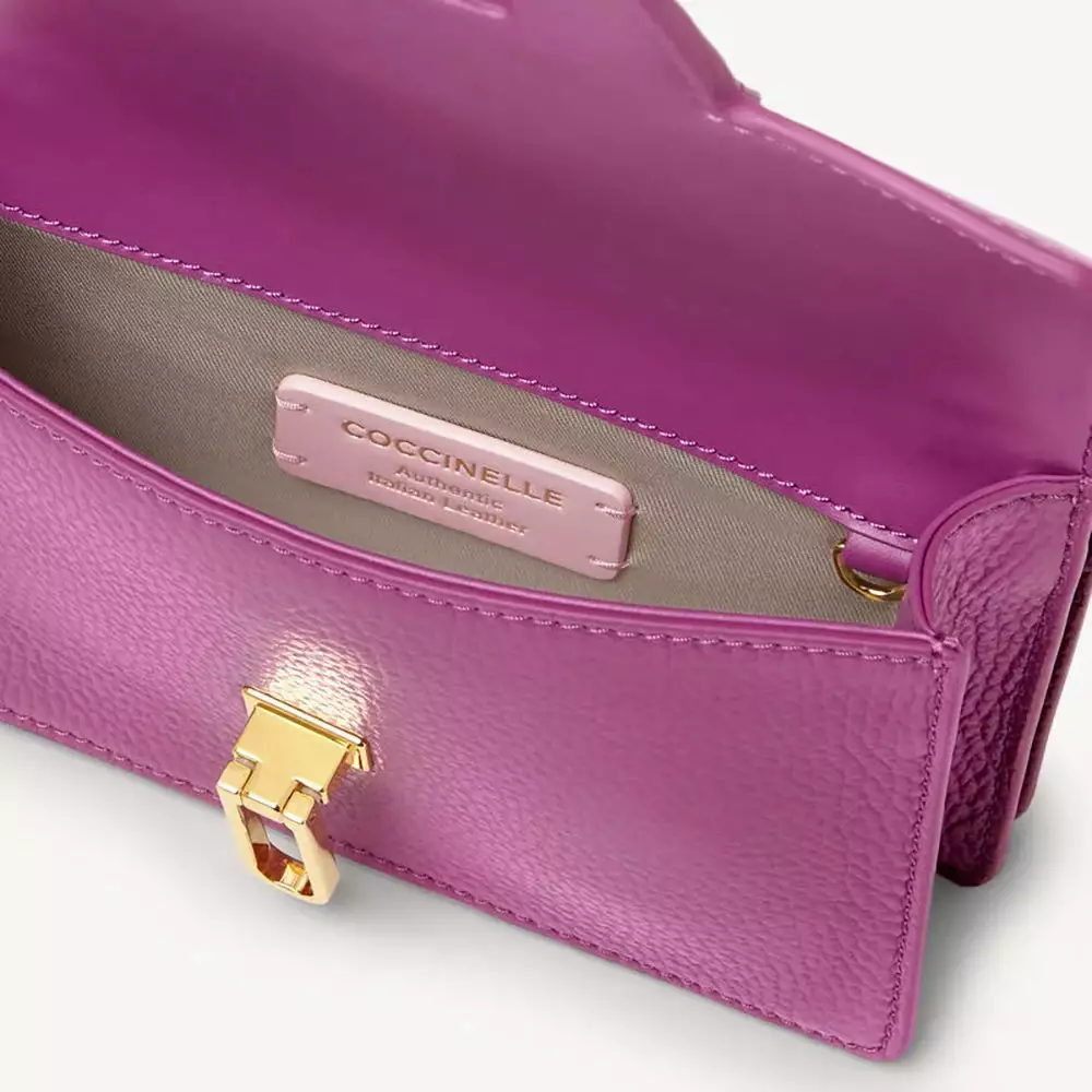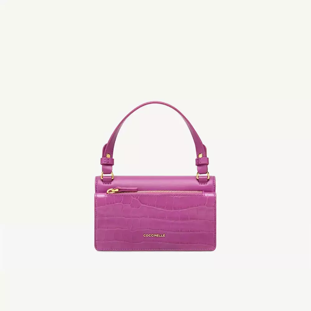 I modelli della linea valorizzano il dettaglio del logo Coccinelle attraverso l’iconica chiusura a forma di plettro. Questo modello è realizzato in pelle stampa cocco, pelle liscia e pelle con grana. Gli interni spaziosi consentono di trasportare in sicurezza tutti gli accessori essenziali, per offrire la massima comodità ed eleganza ad ogni donna che ama uno stile di vita dinamico e moderno.