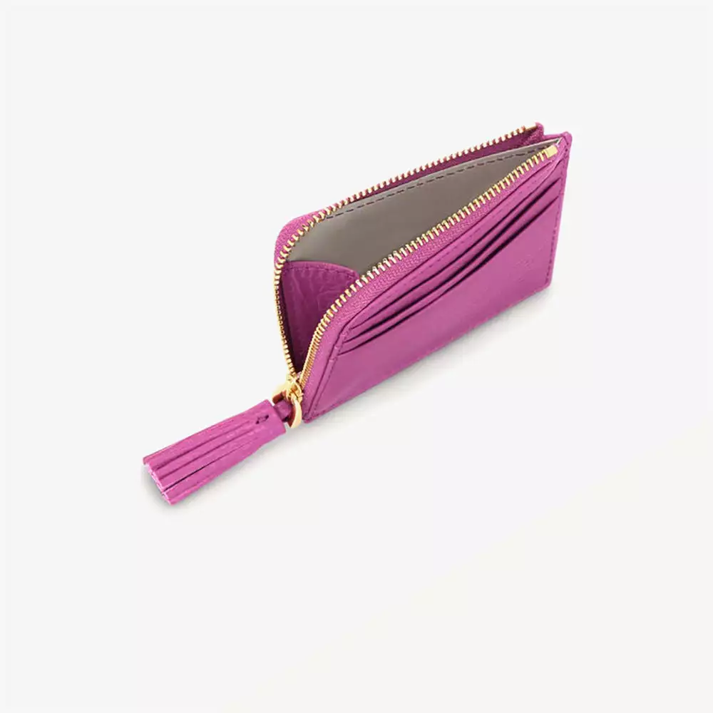 Realizzato interamente in pelle con grana, è composto da sei porta carte di credito e presenta una comoda chiusura con zip.