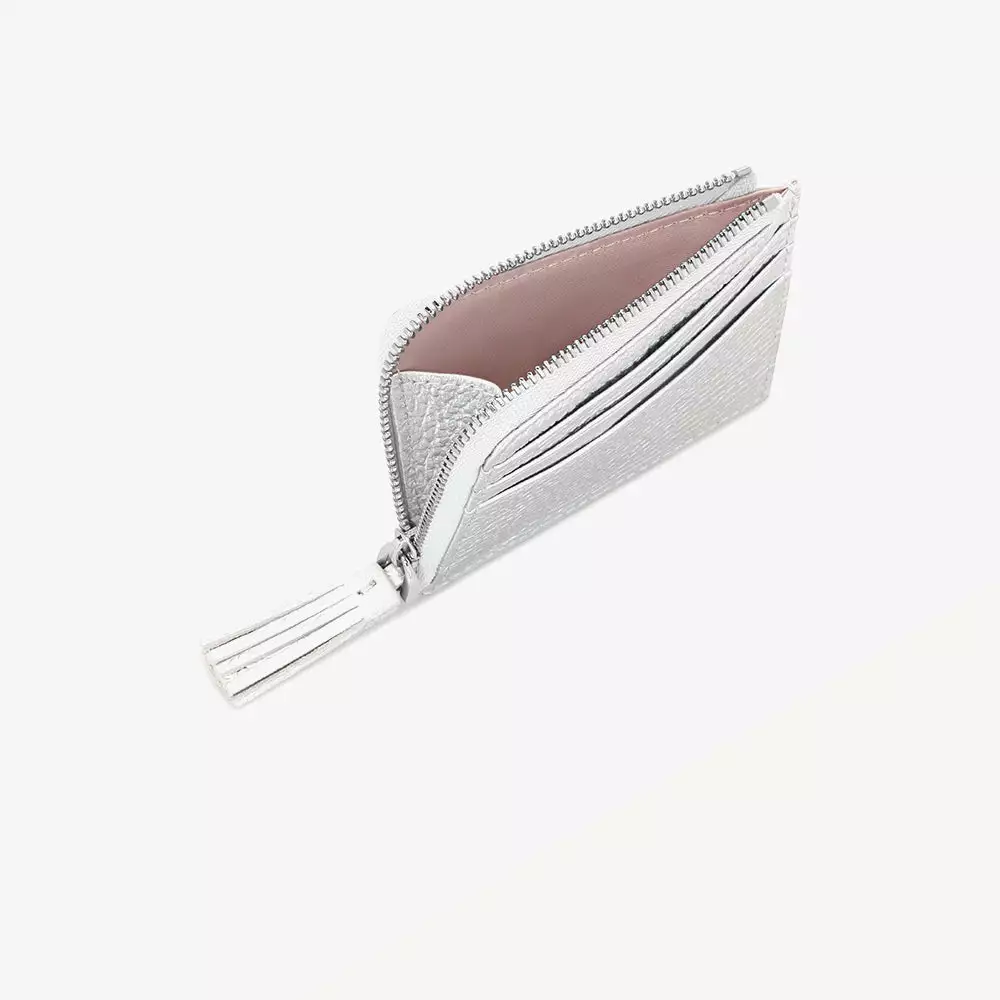 Realizzato interamente in pelle con grana, è composto da sei porta carte di credito e presenta una comoda chiusura con zip.