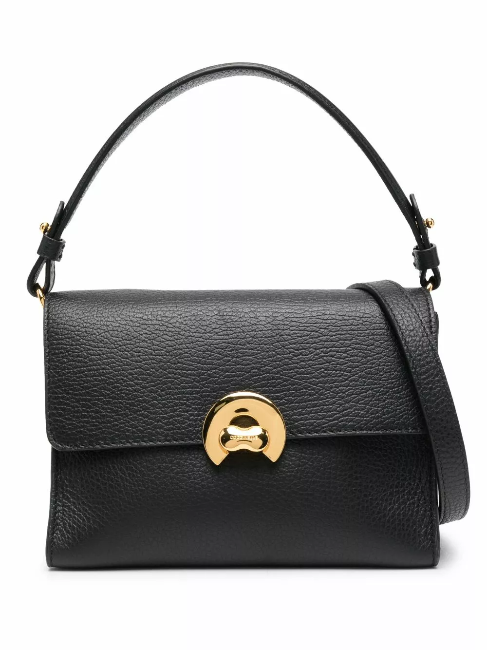 Manico piatto, tasca interna con zip e tracolla regolabile.